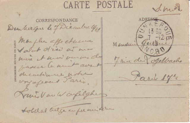(Carte d'un soldat belge en permission à Dunkerque, en décembre 1918.)